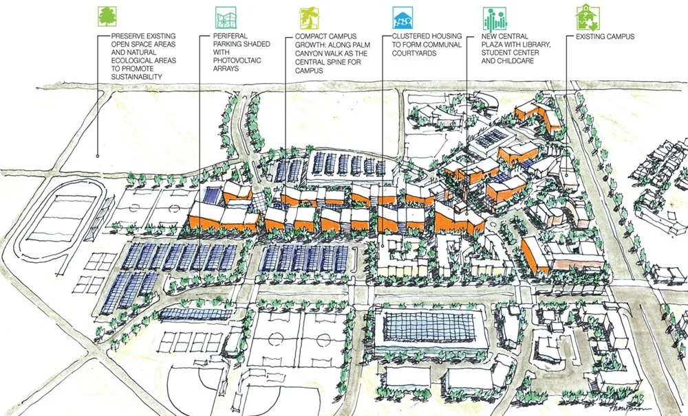 While a Project Architect at Assembledge+ the Cal State San Bernardino Palm Desert Masterplan was developed under the leadership of Principal and Partner Richard Thompson, FAIA.